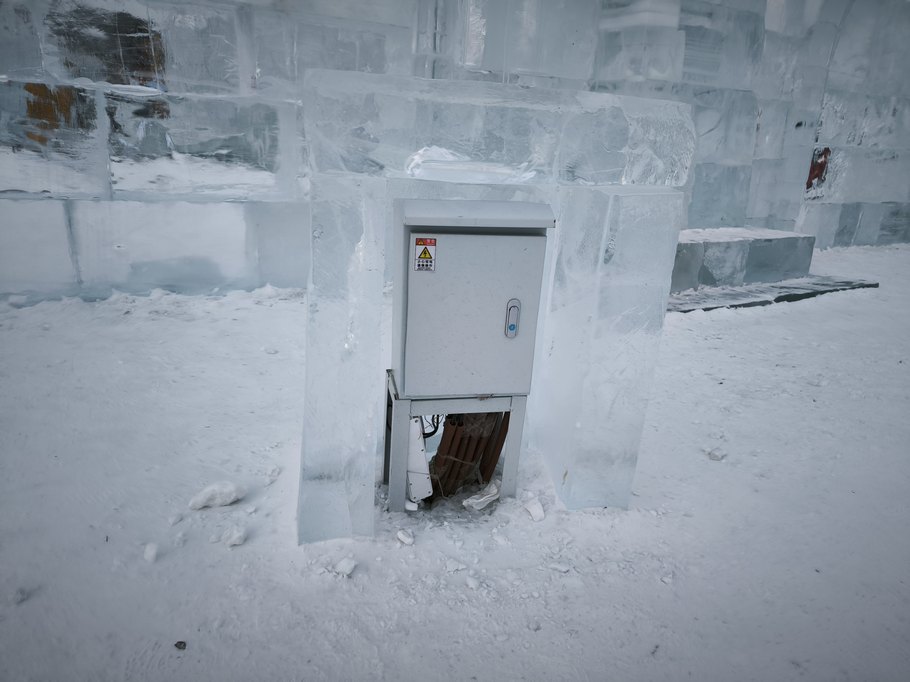 Даже трансформаторную будку спрятали в домике изо льда!