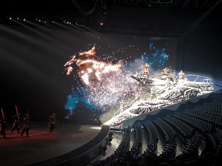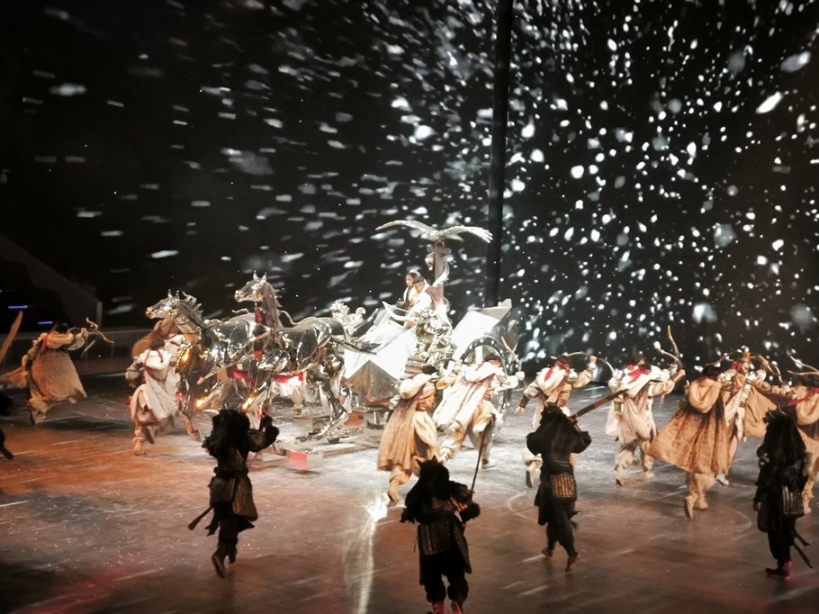 Погуляв по миру льда и снега, пошли на представление «Колесница королей». Входной билет туда нужно покупать было отдельно, 218 юаней (со скидкой нам в 198 обошлось)