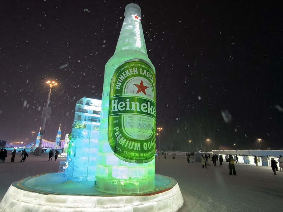Не знаю почему, но пиво Heineken в Китае повсюду, притом, что у них полно своего пива. Иногда встречались скульптуры в виде бутылке Tsingtao, но это были исключения из правил )