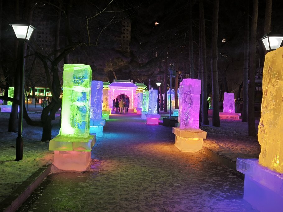 Этот парк весь состоит зимой из ледовых скульптур, и каких тут только нет!