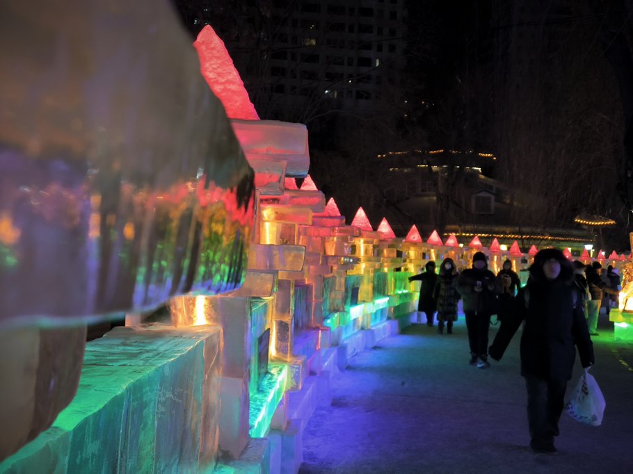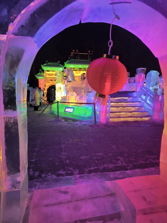 В парк Чжаолинь мы планировали сходить именно вечером — там находятся ледовые фигуры, а вечером у них подсветка и выглядит всё красиво!