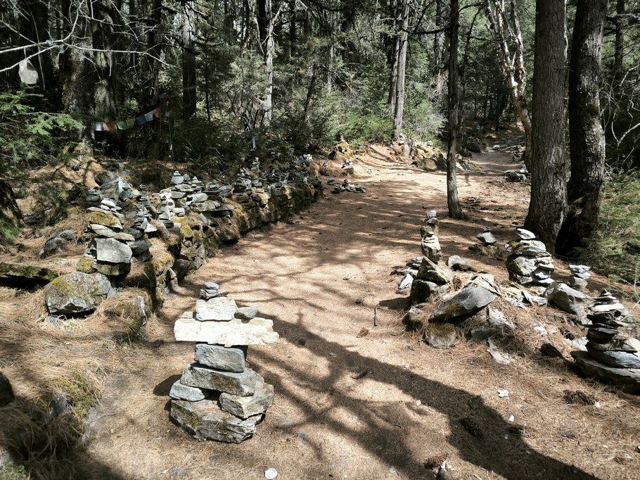 Периодически встречали такие вот конструкции из плоских камней, которые кто-то делал. Смотрится красиво, Великая Непальская стена 🙂
